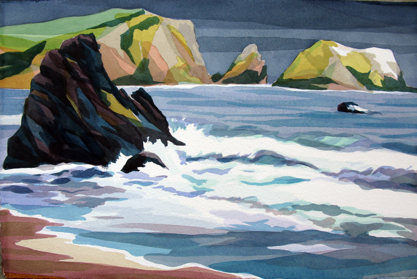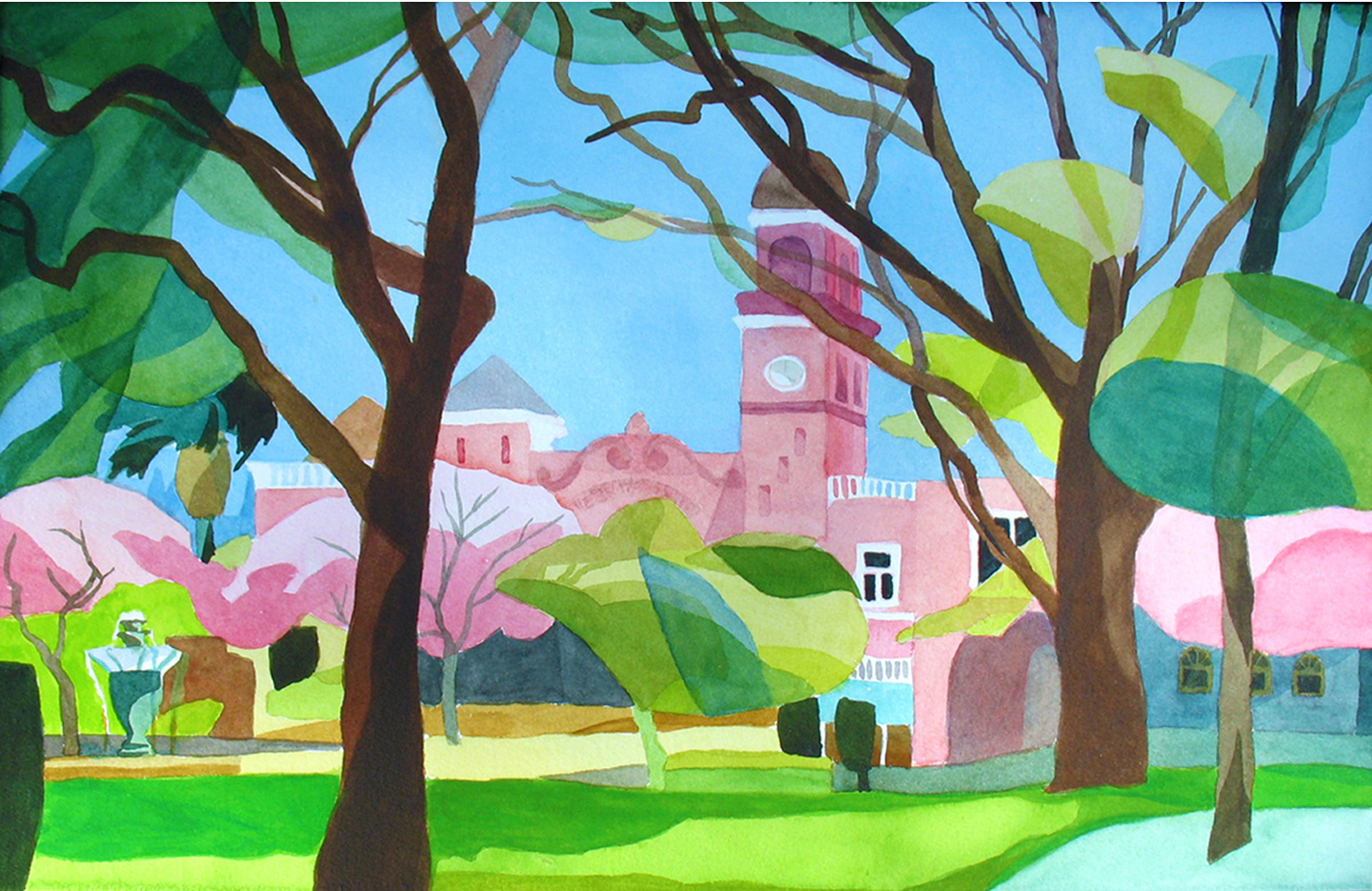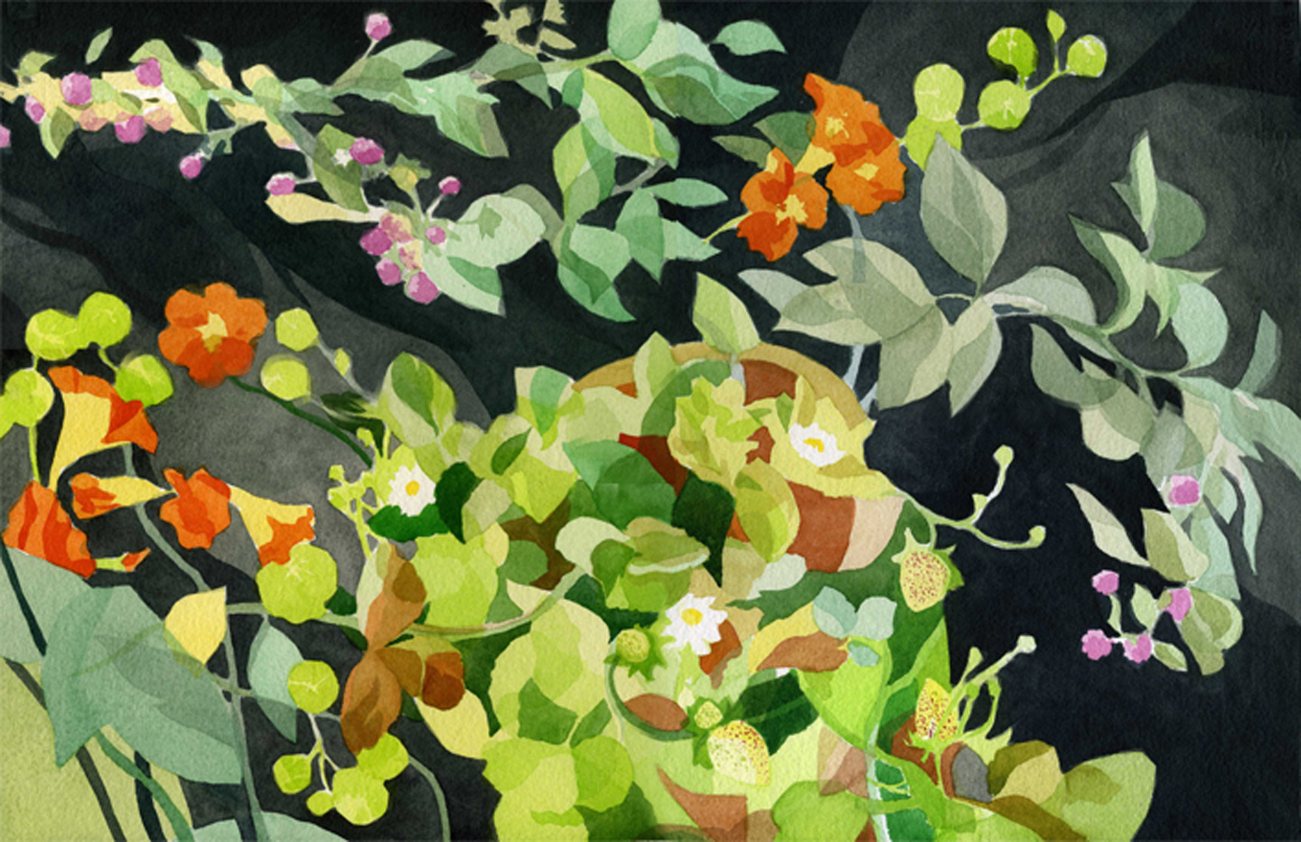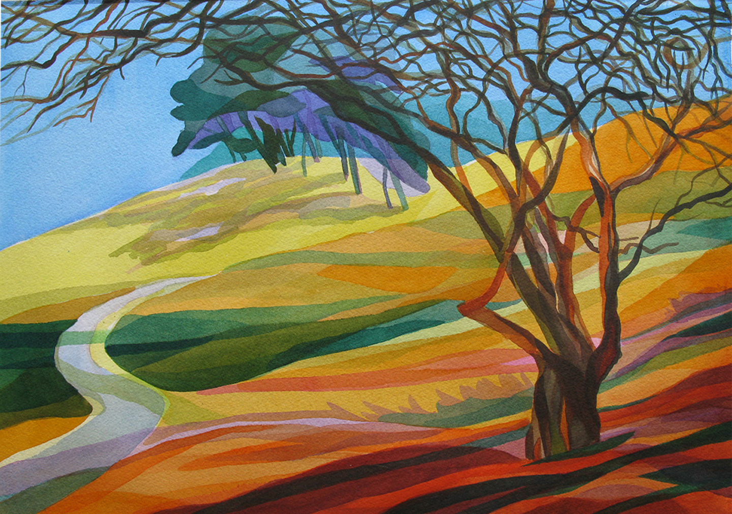 Sara strives to analyze and distill the visible, to synthesize it into a visual composition, using the unique transparent quality of watercolor.